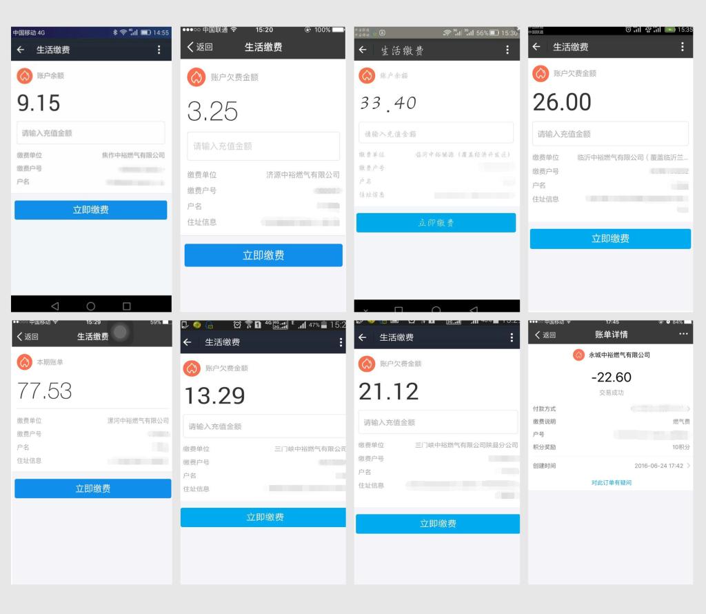 4月份,集團與合作方簽訂框架合作協議。經過審慎必選,確定支付寶成為集團移動支付項目的合作建設單位;5月份,確定首期移動支付項目實施單位,按計劃啟動對接程序開發;6月份,6個地市7家公司的移動支付項目聯合調試工作次序開展;7月1日,集團首期移動支付合作項目正式上線,即日起,焦作、漯河、臨沂、三門峽、濟源、永城6地市的集團普表居民用戶可通過支付寶輕松實現氣費繳納操作。